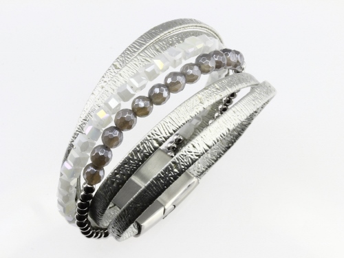 ONE LINE OF WHITE CRYSTAL IN SQUARESHAPE AND ONE LINE OF GREY CRYSTALS AND STEEL BALLS.