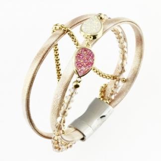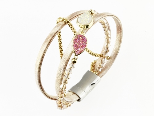 CENTER WITH 2 AGATE STONES COLORED IN CHAMPAGNE AND ROSE COLOR.