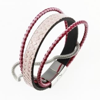 STAINLESS STEEL LEATHER BRACELET WITH ONE CHAIN .