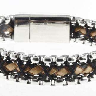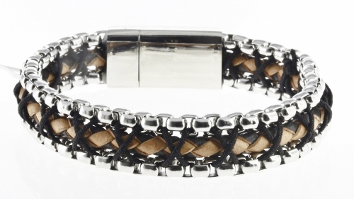 STAINLESS STEEL BRACELET WITH BROWN FIBER