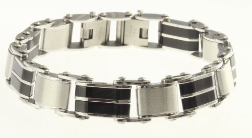 STAINLESS STEEL REVERSIBLE MEN BRACELET TWO TONE S/S & IPB COLOR