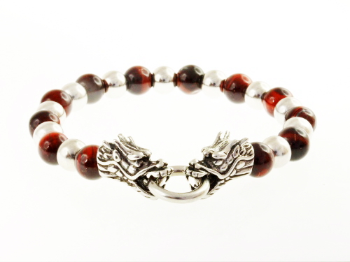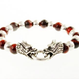 STAINLESS STEEL & TIGER EYES BEADS BRACELET WITH CENTRE TWO DRAGON HEADS BRACELET