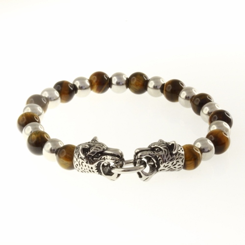 STAINLESS STEEL ELASTIC BEADS BRACELET WITH PANTHER HEADS