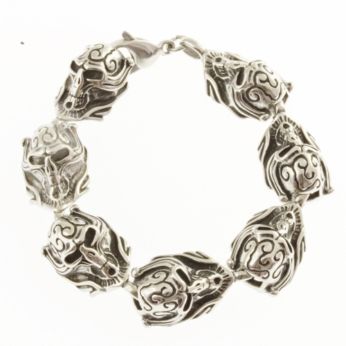 STAINLESS STEEL BRACELET WITH SKULL WITH BLACK OIL PAINTING