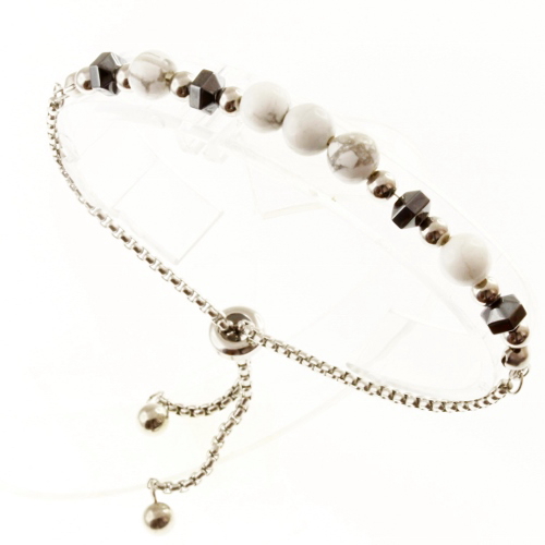 STAINLESS STEEL ADJUSTABLE BRACELET WITH STEEL & NATURAL STONE & HEMATITE BEADS