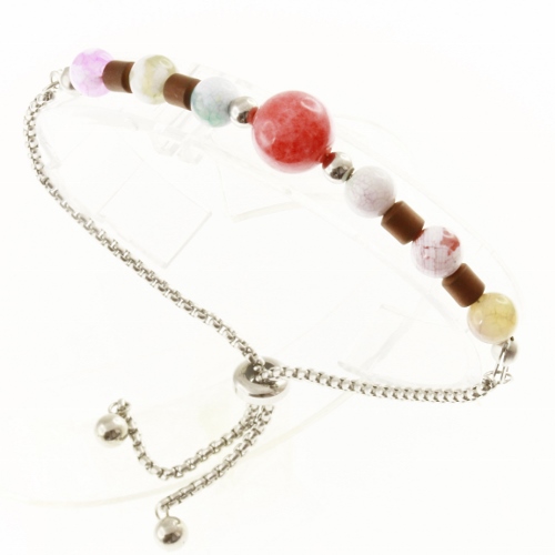STAINLESS STEEL ADJUSTABLE BRACELET WITH STEEL & NATURAL STONE
