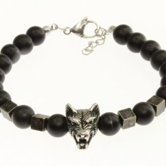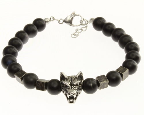 STAINLESS STEEL BRACELET WITH STEEL & ONIX BEADS WITH ROUND CENTER IN STEEL AND BLACK OIL