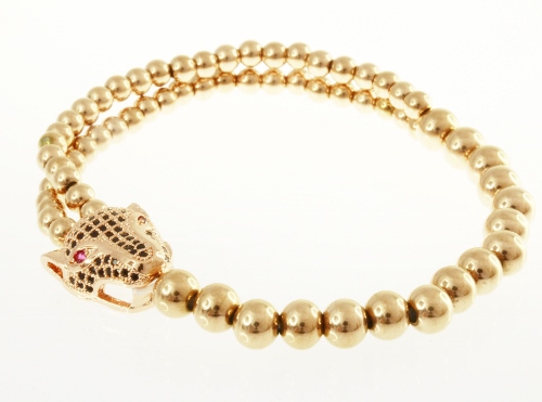 STAINLESS STEEL BRACELET WITH CENTER PANTHER WITH WHITE CRYSTALS ALL IN IPG COLOR
