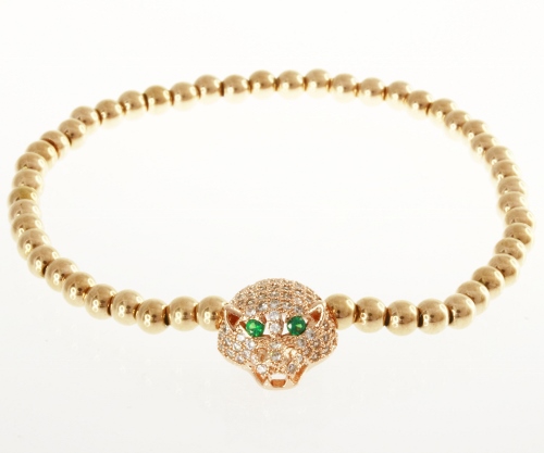 STAINLESS STEEL BRACELET WITH CENTER PANTHER WITH WHITE CRYSTALS ALL IN IPG COLOR