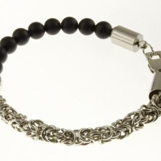 STAINLESS STEEL BLACK BEADS & CHAIN BRACELET ALL IN S/S COLOR