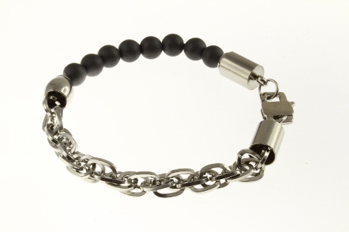 STAINLESS STEEL ONIX BEADS & CHAIN BRACELET ALL IN S/S COLOR