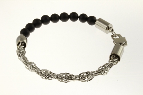 STAINLESS STEEL ONIX BEADS & CHAIN BRACELET ALL IN S/S COLOR