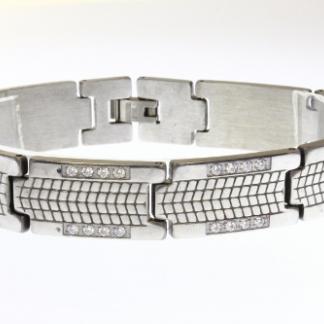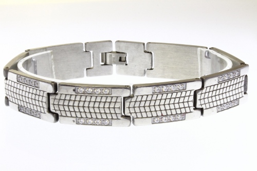 STAINLESS STEEL MEN BRACELET WITH CNC SETTING ON THE LINKS IN S/S COLOR