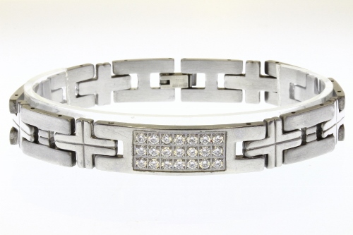 STAINLESS STEEL MEN BRACELET WITH CNC SETTING ON THE LINKS IN S/S AND IPG COLOR