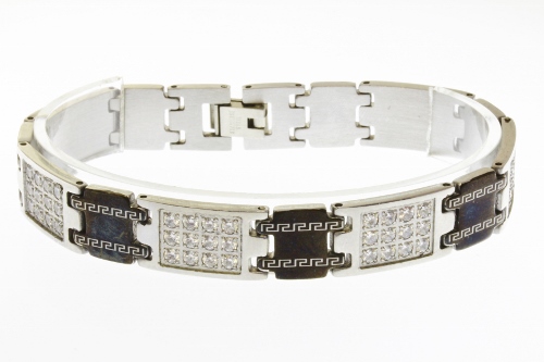 STAINLESS STEEL MEN BRACELET WITH CNC SETTING ON THE LINKS IN S/S AND IPB COLOR