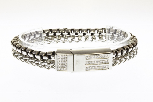 STAINLESS STEEL DOUBLE CHAIN MEN BRACELET LOCK WITH CNC SETTING ALL IN S/S COLOR