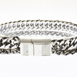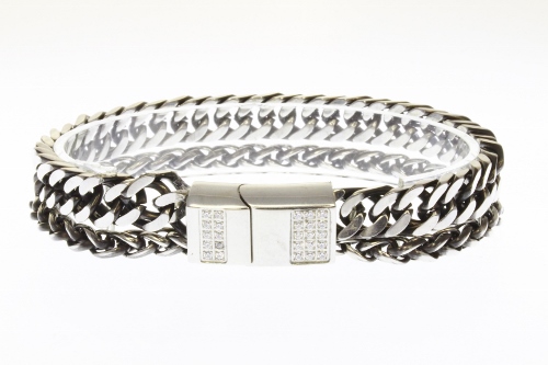 STAINLESS STEEL DOUBLE CHAIN MEN BRACELET LOCK WITH CNC SETTING top IN S/S COLOR BOTTOM CHAIN OXIDIZE