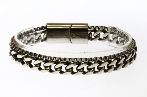STAINLESS STEEL DOUBLE CHAIN MEN BRACELET LOCK WITH CNC SETTING ALL IN S/S COLOR