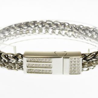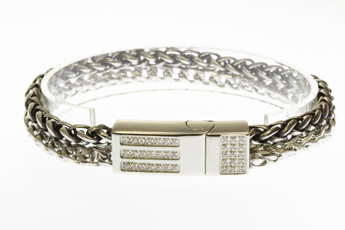 STAINLESS STEEL DOUBLE CHAIN MEN BRACELET LOCK WITH CNC SETTING BOTTOM CHAIN OXIDIZE BOTTON CHAIN OXIDIZED
