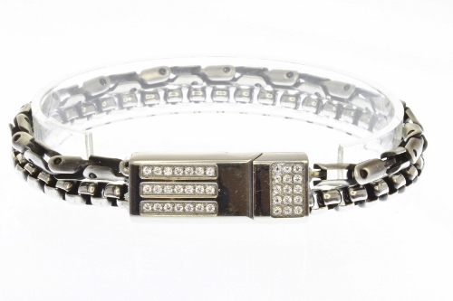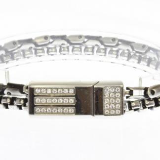 STAINLESS STEEL DOUBLE CHAIN MEN BRACELET LOCK WITH CNC SETTING ALL IN S/S COLOR