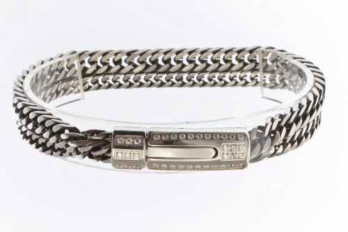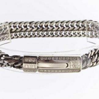 STAINLESS STEEL DOUBLE CHAIN MEN BRACELET LOCK WITH CNC SETTING BOTH IN OXIDIZED COLOR