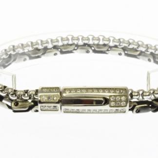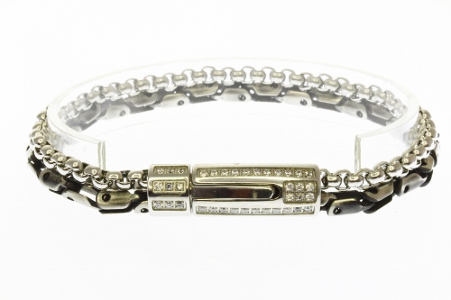 STAINLESS STEEL DOUBLE CHAIN MEN BRACELET LOCK WITH CNC SETTING BOTTOM CHAIN OXIDIZE TOP CHAIN IN S/S COLOR