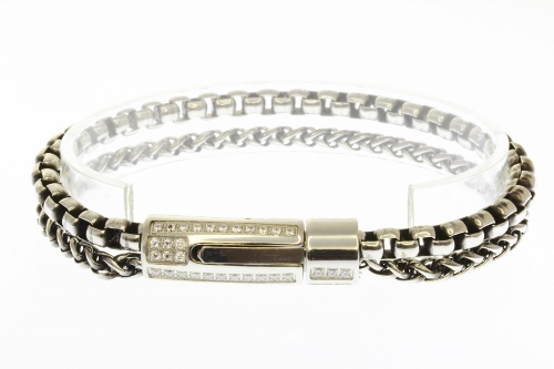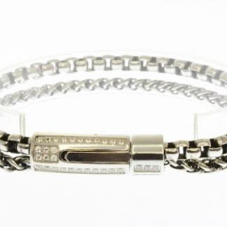 STAINLESS STEEL DOUBLE CHAIN MEN BRACELET LOCK WITH CNC SETTING ALL IN S/S COLOR