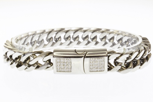 STAINLESS STEEL CHAIN MEN BRACELET LOCK WITH CNC SETTING ALL IN S/S COLOR