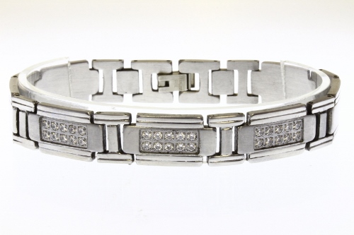 STAINLESS STEEL LINK MEN BRACELET IN SS COLOR 3 CENTER PIECE LINKS WITH CNC SETTING
