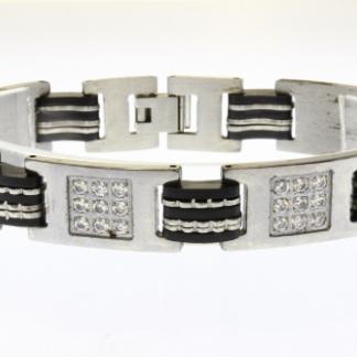 STAINLESS STEEL LINK CHAIN MEN PU BRACELET IN S/S COLOR 4 CENTER PIECE LINKS WITH CNC SETTING