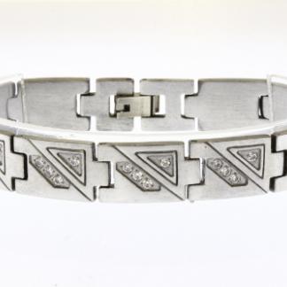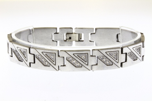 STAINLESS STEEL LINK MEN BRACELET IN SS COLOR 7 CENTER PIECE LINKS WITH CNC SETTING