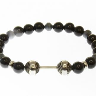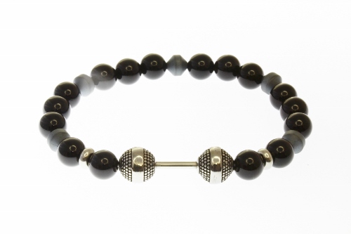 STAINLESS STEEL ELASTIC BLACK STONE AND STEEL BEADS BRACELET WITH CENTER WITH BLACK OIL PAINTING