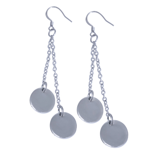 STAINLESS STEEL EARRING WITH 2 CIRCLE CHARMS ALL IN S/S COLOR