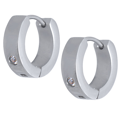 STAINLESS STEEL HUGGIE EARRING WITH 1 CZ ALL IN S/S COLOR