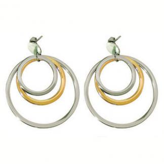 STAINLESS STEEL EARRING WITH 3 CIRCLE IN IPG TWO TONES