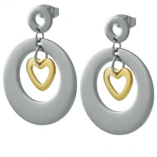 STAINLESS STEEL EARRING IN CIRCLE SHAPE WITH HEART & CIRCLE IN IPG TWO TONES