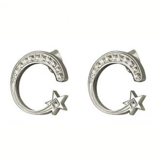 STAINLESS STEEL EARRING IN MOON SHAPE WITH CZ ALL IN S/S COLOR