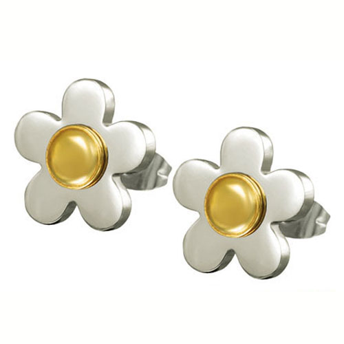 STAINLESS STEEL EARRING IN FLOWER SHAPE IN IPG TWO TONES