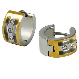 STAINLESS STEEL EARRING WITH 3 CZ IN IPG 2 TONES