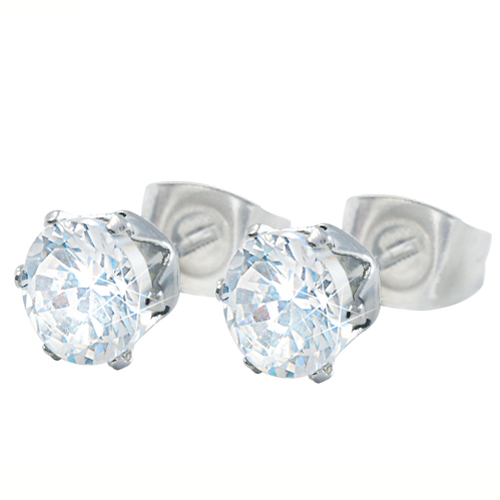 STAINLESS STEEL EARRING WITH ROUND CZ ALL IN S/S COLOR