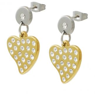 STAINLESS STEEL EARRING IN HEART SHAPE WITH CZ IN IPG TWO TONES
