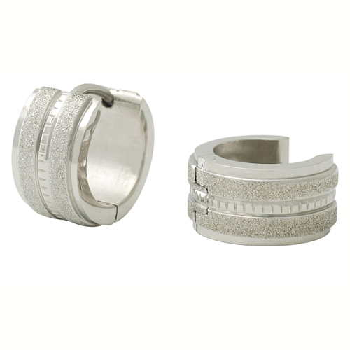 STAINLESS STEEL HUGGIE EARRING IN ROUND SHAPE WITH POLISH & SANDBLAST 2 TONE ALL IN S/S COLOR