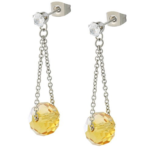 STAINLESS STEEL EARRING WITH CZ WITH STONE IN DIFFERENT COLORS IN S/S COLOR