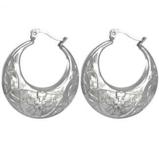 STAINLESS STEEL EARRING IN ROUND SHAPE WITH FLOWER PATTERN ALL IN S/S COLOR
