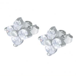STAINLESS STEEL EARRING IN TREBOL SHAPE WITH CZ ALL IN S/S COLOR