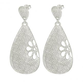 STAINLESS STEEL EARRING IN DROP SHAPE WITH FLOWER CUTOUT ALL IN S/S COLOR