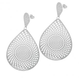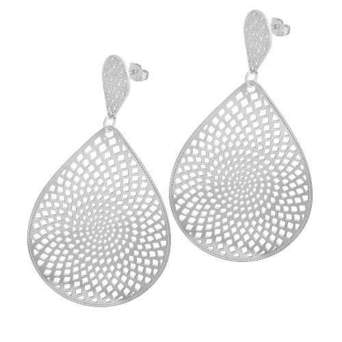 STAINLESS STEEL EARRING IN DROP SHAPE WITH CUTOUT PATTERN ALL IN S/S COLOR