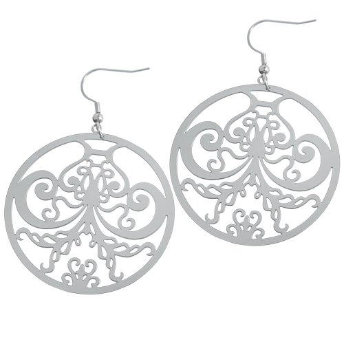 STAINLESS STEEL EARRING IN ROUND SHAPE WITH CUTOUT PATTERNALL IN S/S COLOR