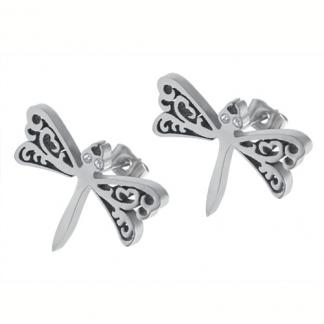 STAINLESS STEEL EARRINGS IN DRAGON FLY SHAPE WITH CZ ALL IN S/S COLOR