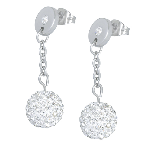 STAINLESS STEEL EARRING IN DROP BALL SHAPE WITH CZ ALL IN S/S COLOR